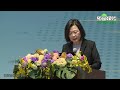 蔡英文致詞時表示,今天是中山大學「國際金融研究學院」揭牌,也是台灣第一所以國家重點金融領域成立的學院,意義非凡。她很高興能與產、官、學界的先進,一起見證這個重要的時刻。